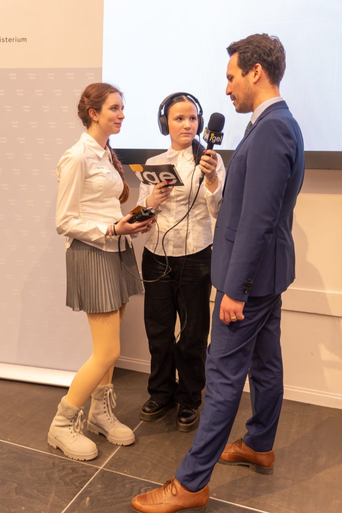 Ein besonderes Highlight war das Interview mit Bildungsminister Christoph Wiederkehr, der persönlich vor Ort war. Er sprach mit uns über neue Lehrpläne, den sinnvollen Einsatz von Künstlicher Intelligenz im Unterricht und darüber, wie Schule junge Menschen besser auf das Leben vorbereiten kann. Auch Generalsekretär Alexander Huber aus dem Bildungsministerium stand uns Rede und Antwort.